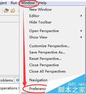 1、打開eclipse,點擊【window】菜單,選擇【preferences】選項。