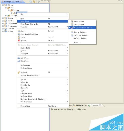7、那么如何以可視化的方式來打開類文件呢?在類文件單擊右鍵,選擇——Open With...——選擇WindowsBuilder