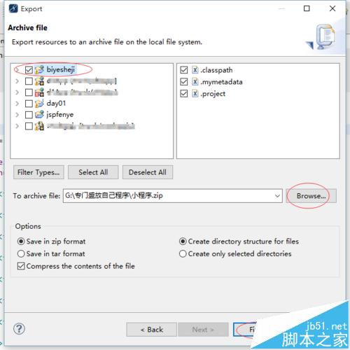 3、然后選擇你要導出的項目,browse可以選擇你導出文件所在的地方。