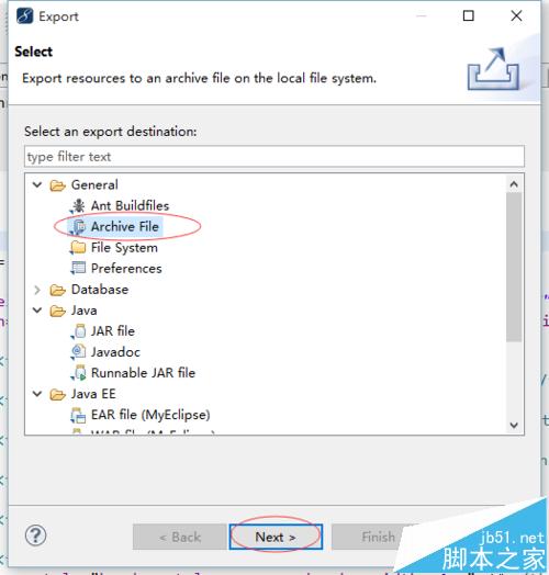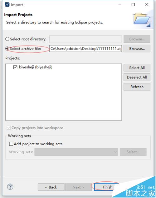 3、然后進行brows,選擇你想要導入的文件,如果是壓縮文件,就是archive file,否則就是上面那個。然后點擊finish