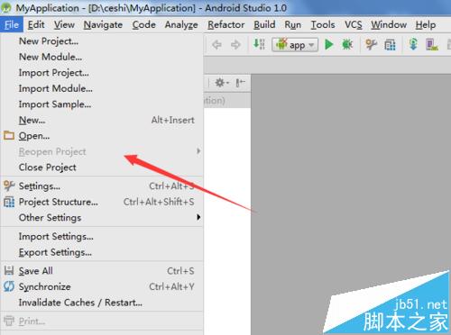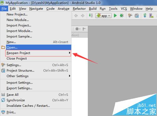 3、彈出了的下拉的菜單中進行選擇“Reopen Project”的選項。