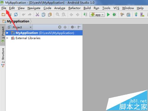 2、進入到Android studio的開發界面中點擊菜單中的“file”。