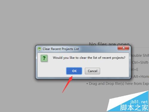 5、會彈出一個為clear recent project list的窗口,確認進行刪除軟件歷史記錄信息,直接進行點擊“OK”.