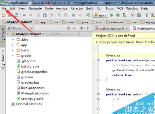 2、然后點擊Android studio的菜單中的“file”的選項。