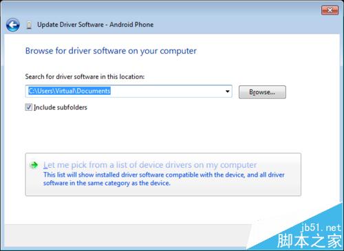 4、Select “Let me pick from a list of device drivers on my computer”.