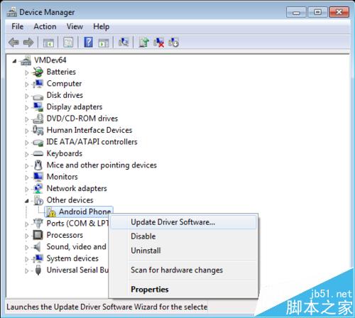 2、如果安裝了“Google USB Driver”,還不能解決問題,則繼續(xù),右鍵我的電腦,選擇到設(shè)備管理器,右鍵更新驅(qū)動(dòng),如圖