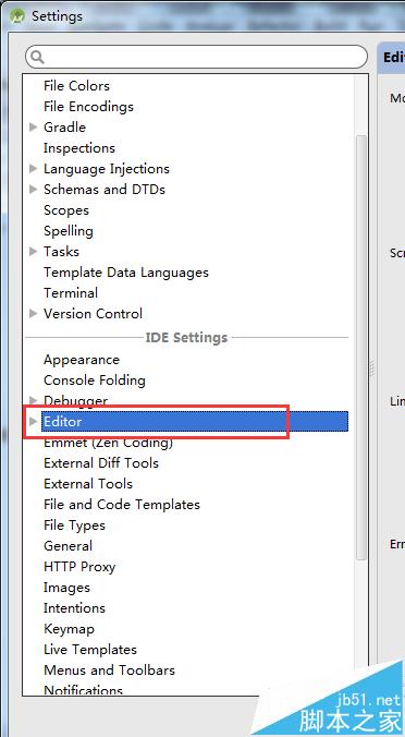 2、左側導航欄,選擇“Editor”,如圖: