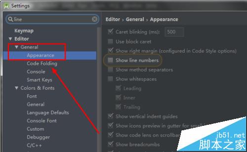 3、彈出settings對話框,搜索框輸入 line 敲回車搜索。