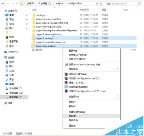 2、打開Eclipse安裝目錄(本人是把它安裝在E:/Eclipse目錄下)下的configuration目錄,刪除org.eclipse.update和org.eclipse.osgi這兩個文件夾,再啟動Eclipse就會發現問題解決了