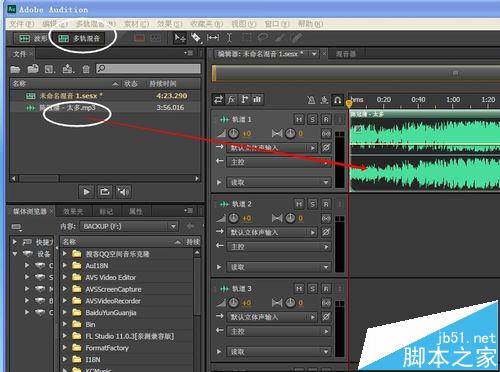 5、在多軌界面雙擊剛才拖到軌道上的音樂,如圖。