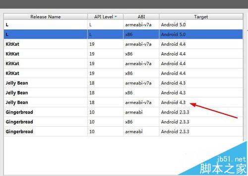 4、進行選擇一個Android sdk的版本,列表中都是已經完成的版本,進行選擇一個版本。