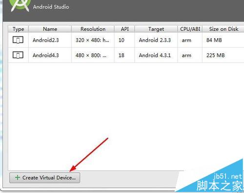 2、然后就進入到了Android devices中之后,就可以進行創建一個devices中,進行點擊”create virtual device“。