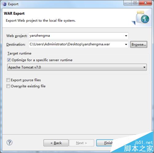 6、選擇后,點擊finish即可,然后再保存的路徑下即可看見一個 xxx.WAR