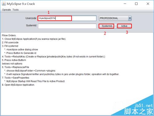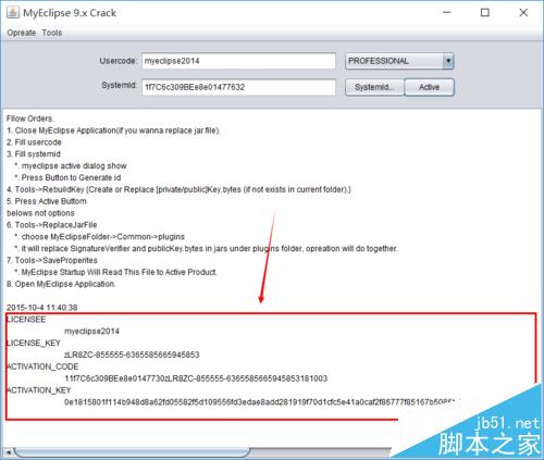 3、在usercode那里隨便輸入一串字符,點 擊SystemId 按鈕產生一個 SystemId,再點 Active 按鈕。下面的窗口會出現一些東西,如果出現null,則說明你環境變量配置得不對。