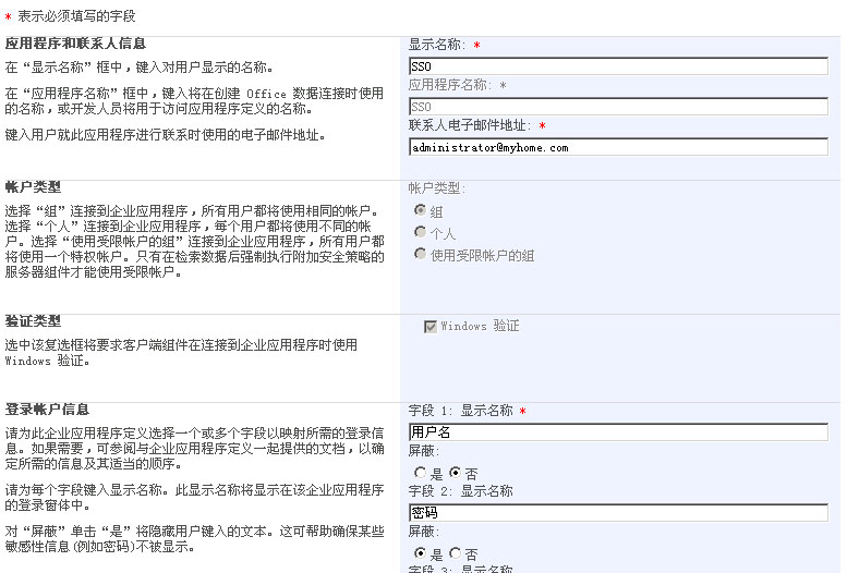 設置SSO的名稱,帳戶類型等,我這里選的是組,選中Windows驗證。