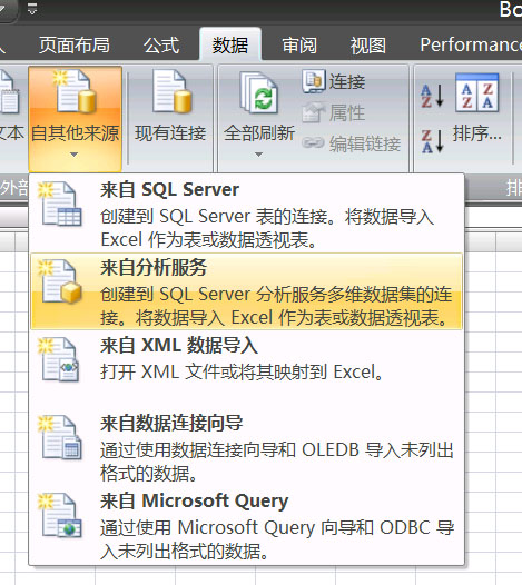 新建一Excel文檔。在文檔中連接到OLAP服務器。