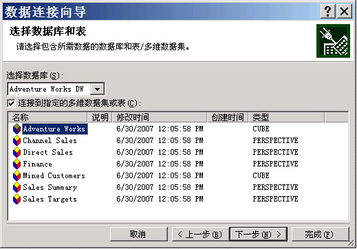 隨意選擇一個Adventure Works的視圖或者立方體。然后點完成。