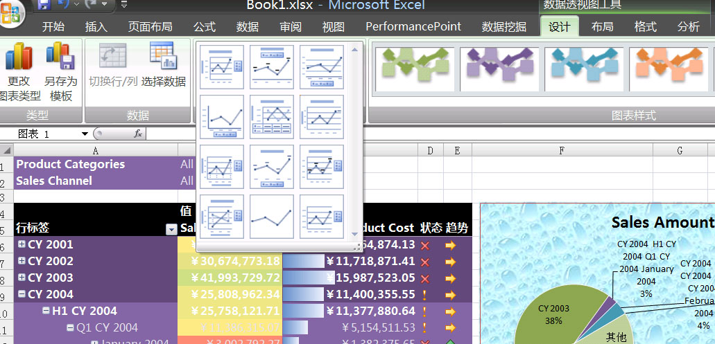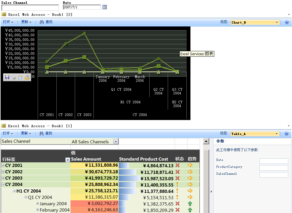發布Excel報表后就可以使用Web形式察看報表了,但web形式的圖形跟在Excel中看到的還是有些差別的。