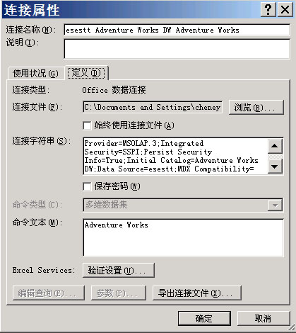 在Excel數據連接屬性中可看到ODC文件是保存在本地硬盤上的,如果將Excel文件發布到MOSS上,ODC文件也要發布到MOSS上才行。