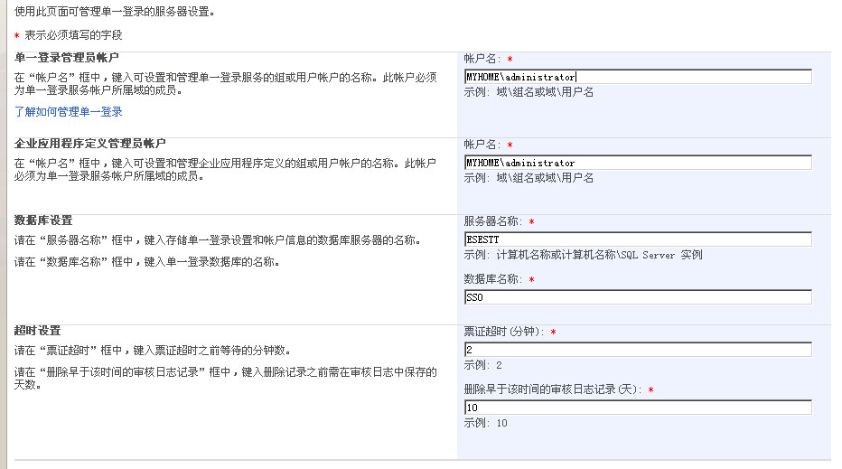 在MOSS的管理中心中選“管理單一登錄的設置”