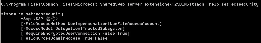 1 默認情況下,SSP獲取方式是“Trusted subsystem”,如果之前沒有更改過可使用stsadm.exe更改,stsadm.exe用法如下: