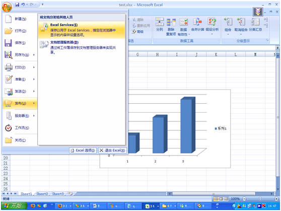 第二種上傳方法就是利用Excel2007的發(fā)布功能(這次MS的產(chǎn)品線的相互支持真是緊密啊):
