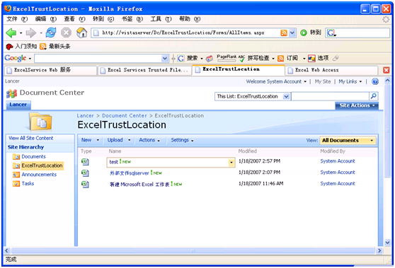要想使用Excel Services,您首先要啟動MOSS中的ExcelCalculation Services服務(wù),并且保證存放Excel文檔的目錄已經(jīng)設(shè)置為受信任的路徑…
