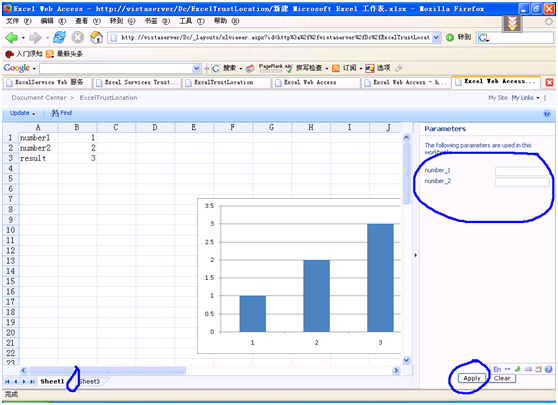 填寫數(shù)字后點擊”apply”按鈕,頁面會被刷新,然后將結(jié)果返回給我們:對應(yīng)的單元格和圖象都會發(fā)生變化。如果有需要,我們還可以將本頁保存。但無法保存成Excel文件,有一些遺憾啊… 當(dāng)然,MS還是給我們提供了這個功能,只是要用程序?qū)崿F(xiàn):我會在下一偏文章和大家討論。感謝各位瀏覽