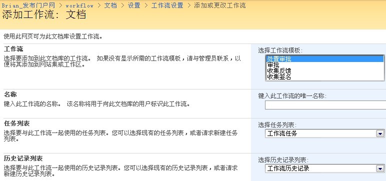 簡(jiǎn)單的看下SharePoint中提供的Workflow模板,我們可以向文檔等中添加工作流模板: