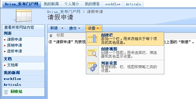 我在我的網(wǎng)站中創(chuàng)建一個(gè)“請(qǐng)假申請(qǐng)”的列表,并在設(shè)置中“創(chuàng)建欄”: