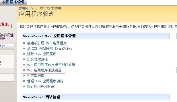 默認情況下是不開啟Event Handler支持的,需要我們手動開啟:進入應用程序管理---進入Web應用程序常規設置。