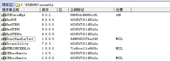 GAC的系統路徑為:C:/WINDOWS/assembly,直接將生成的Event Handler dll拖入到這個路徑中即可。