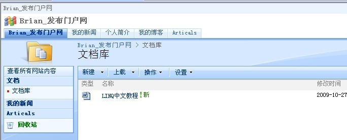在我們先前創建的網站中,我創建了一個文檔庫的List,并且上傳了一個word文件,我們的Event Handler就是要添加到這里。
