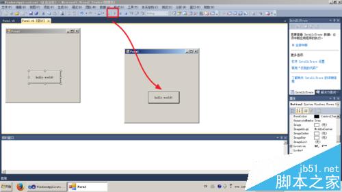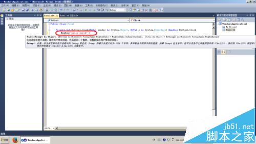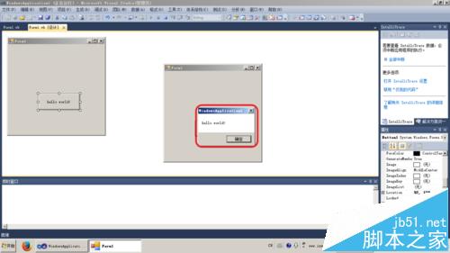 8、測試一下,點擊按鈕,出現MSGBOX 顯示出hello world字樣。