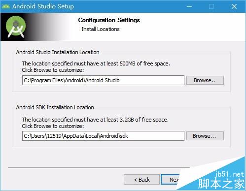 3、我們使用默認的Android Studio和Android SDK安裝目錄,點擊Next下一步。