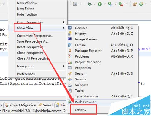 4、如果在Show View的右側沒有顯示出Console,點擊Other。從這里選擇顯示控制臺。