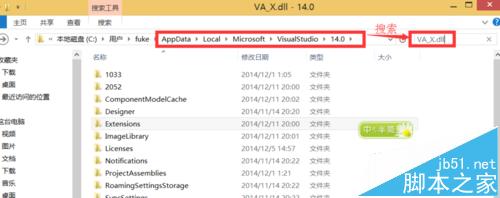 4、找到當前用戶目錄下的“ /AppData/Local/Microsoft/VisualStudio/14.0”,如我的完整的路徑是“C:/Users/fuke/AppData/Local/Microsoft/VisualStudio/14.0”