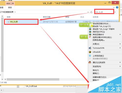 5、在右邊的搜索框里面搜索“VA_X.dll”, 搜索到后,右鍵進入到改文件所在的目錄