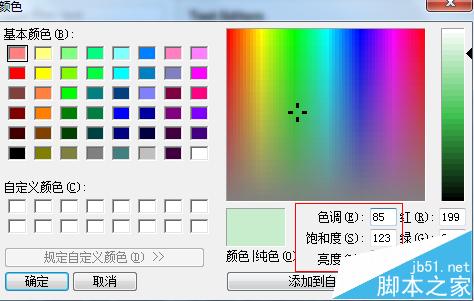 10、把色調(diào)調(diào)成:85 飽和度調(diào)成:123 亮度調(diào)成205 即可調(diào)成豆沙綠色了 然后點(diǎn)確定確定