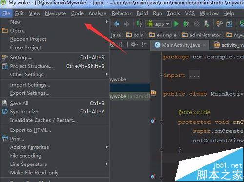 2、進(jìn)行點(diǎn)擊Android studio軟件菜單的“file”的選項(xiàng)。