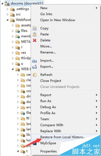 2、右鍵你的項目,選擇Restore from Local,就可以看到你最近刪除的項目文件了。