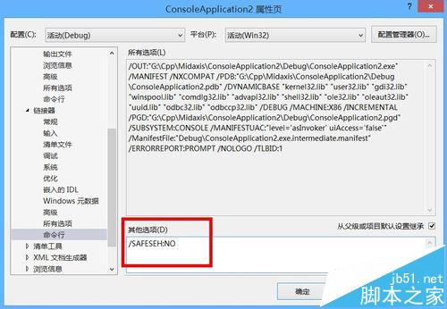 3、將 /SAFESEH:NO 復制到“其它選項(D)”框中,然后點擊應用