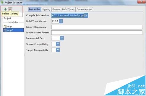2、在Project Structure頁面,選中要刪除的項目,點擊上面的減號圖標。