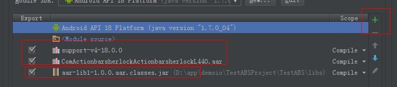 repositories 添加了 flatDir , dependencies 里面添加了 依賴的aar文件。