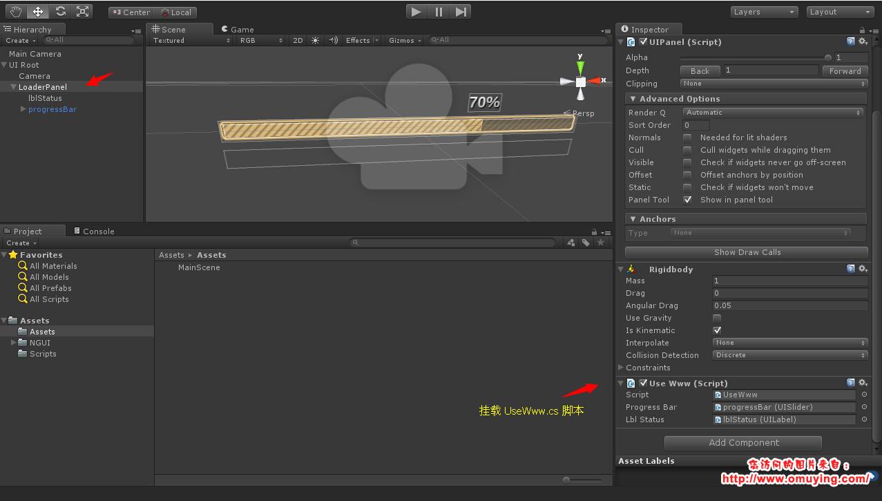 因為前面我封裝了一個 WWW 加載管理器(查看詳情),我們可以直接拿來使用,我們建立一個新的 C# 腳本,取名 UseWwwLoaderManager.cs,全部代碼如下: