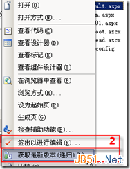 被Default.aspx被簽出到本地后的標志是前面打上了紅勾!