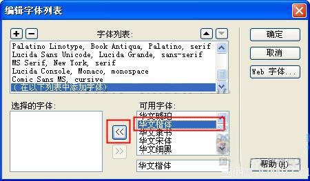 打開“編輯字體列表”,我們可以選擇某些字體,并將它們移到字體列表中,如下圖所示。