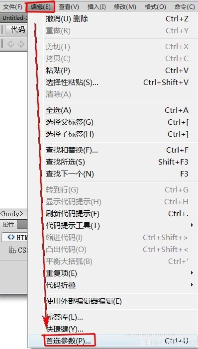 在菜單欄里單擊“編輯”,在彈出的下拉菜單里選擇“首選參數”。