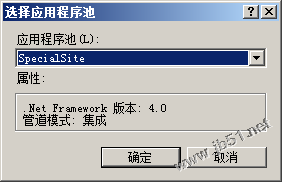 5.設置該網站(站點“SpecialSite”)應用程序池的.net framework 版本為4.0.30196 :