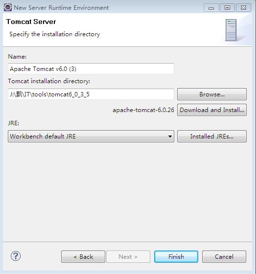 輸入有效目錄之后,單擊 Finish 創建運行庫配置。